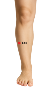 Localizado a 8 medidas abaixo da borda inferior da patela, a 1,5 medidas lateralmente à crista anterior da tíbia. 1 medida abaixo e ao lado do ponto E38, na borda externa da tíbia.