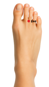 O ponto E44 é um dos mais cruciais do Meridiano do Estômago, conhecido por sua capacidade de regular o Calor interno. Este ponto é frequentemente empregado em casos de excesso de Calor, manifestando-se em sintomas como sangramentos gengivais e outras disfunções estomacais relacionadas ao Calor.