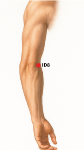 O ponto ID8 é indicado para dispersar Umidade-Calor, sendo especialmente eficaz no manejo de edemas agudos das glândulas cervicais e na caxumba.