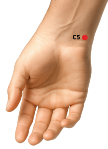 O C5 serve como ponto de conexão com o Meridiano do Intestino Delgado, que por sua vez se conecta com o Meridiano da Bexiga. O Meridiano do Coração pode intervir na Bexiga e a micção. Quando o Fogo do Coração é transmitido ao Intestino Delgado e depois para a Bexiga, causando Calor da Bexiga. Sede, gosto ruim na boca, insônia, úlceras na boca, ardor ao urinar e hematúria (sangue na urina) são os principais sintomas.
