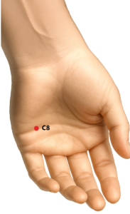 Na palma da mão, entre o quarto e o quinto osso metacarpo, onde o dedo mínimo toca quando se dobra sobre si mesmo.
